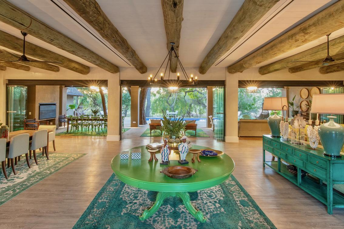 Waterside at Royal Malewane offers calming elegance mixed with colourful intrigue. Its setting is sublime, overlooking the tranquil waters of the waterhole with a backdrop of primal green fever trees.