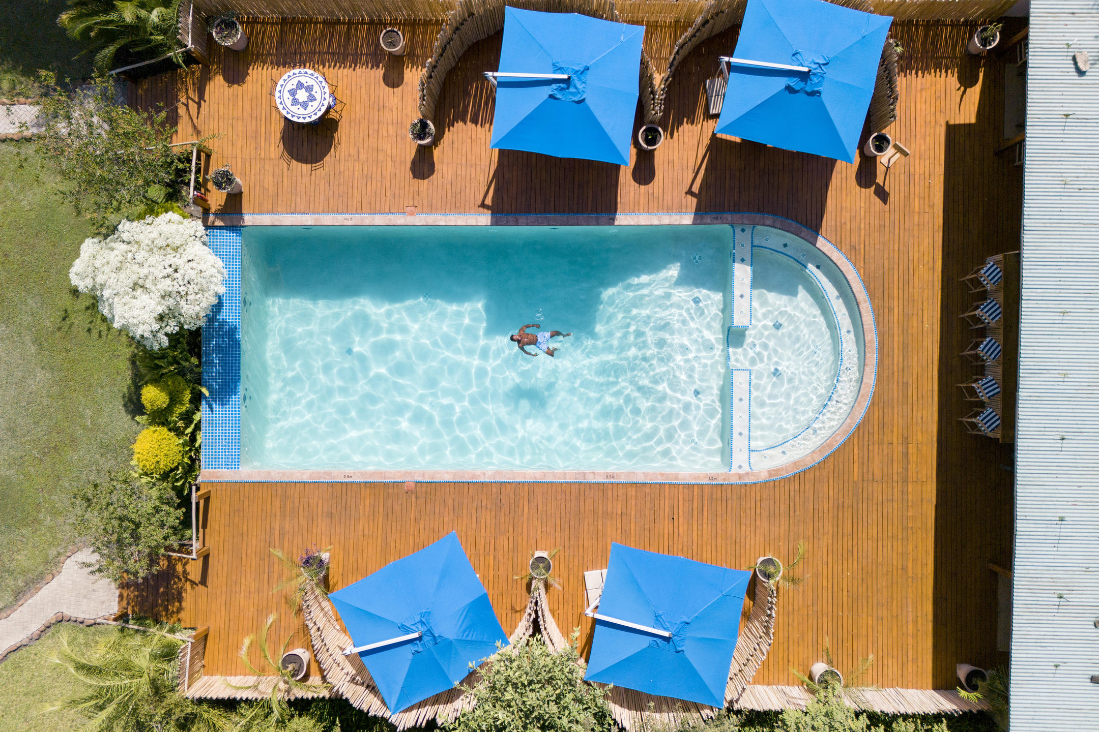 Tongabezi’s public areas have a stylish African vibe. They include an open air bar, sitting area and dining area. However, dining is usually alfresco on one of the river decks. The Lookout is another lovely, indulgent idea β the ultimate chill zone jutting out over the river where you can feel at one with nature. Hidden behind is a high-tech room for when you have to stay in touch. Whilst the Hangout is naturally a cocooning spot to relax and read.Β The main swimming pool is landscaped into a rock face. There’s also a private spa sala for massages or reflexology.