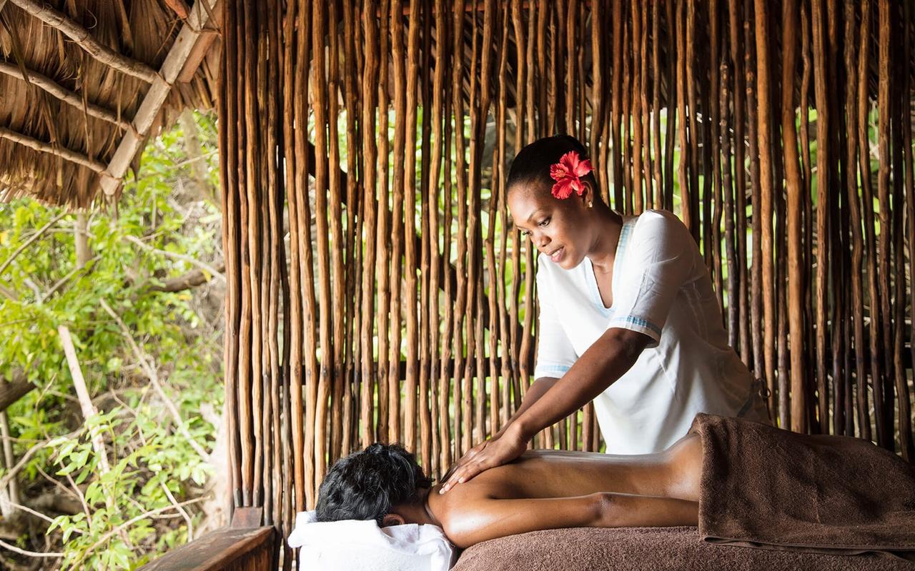The 25 thatched chalets, each with their own private terrace with daybeds, all overlook the ocean. All have complimentary minibar and spacious en suite bathroom with double vanity and shower. The villas are quite close together so we recommend that you take one of the ones further from the main lodge (also helps with walking off the delicious meals!)