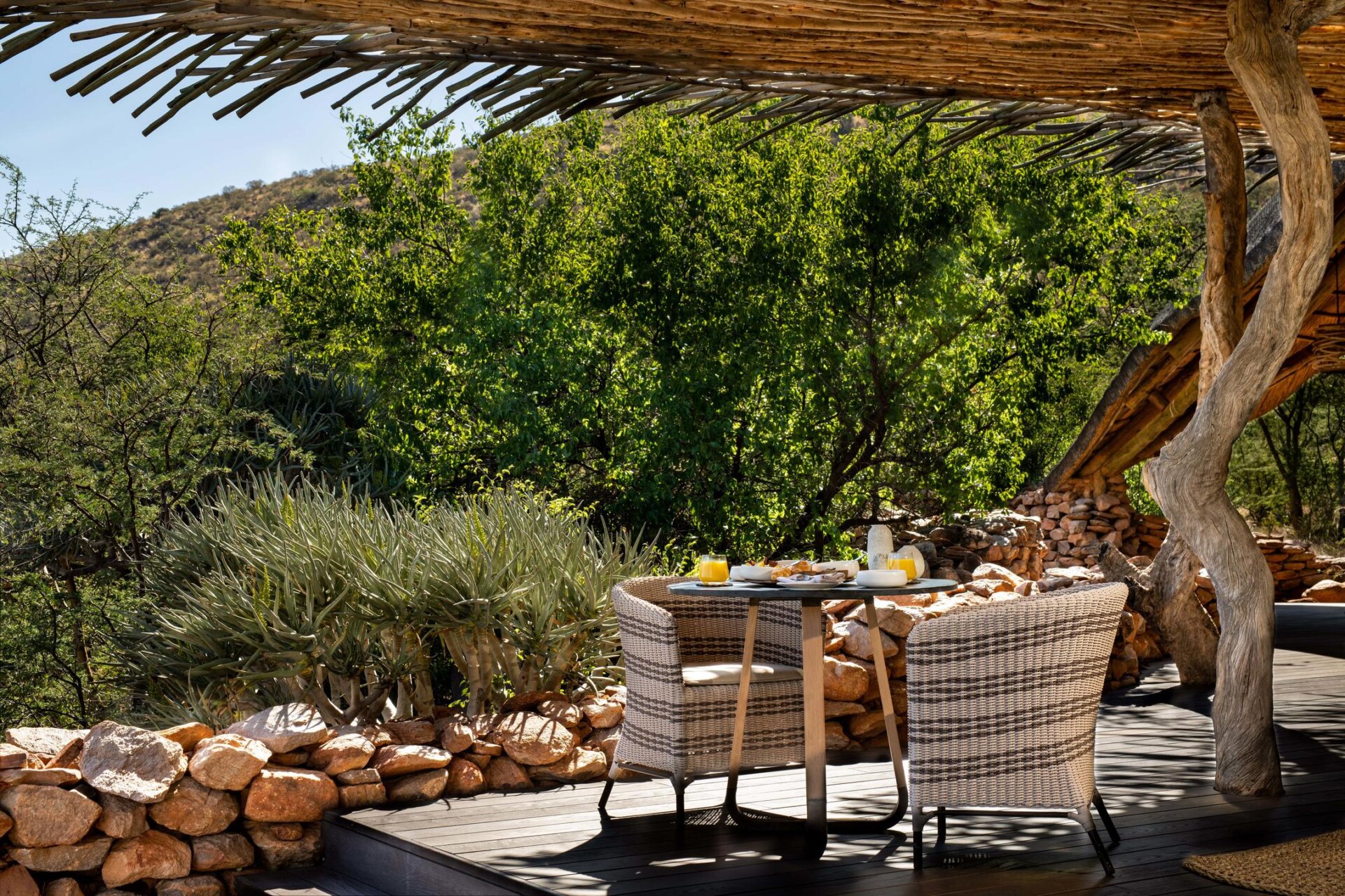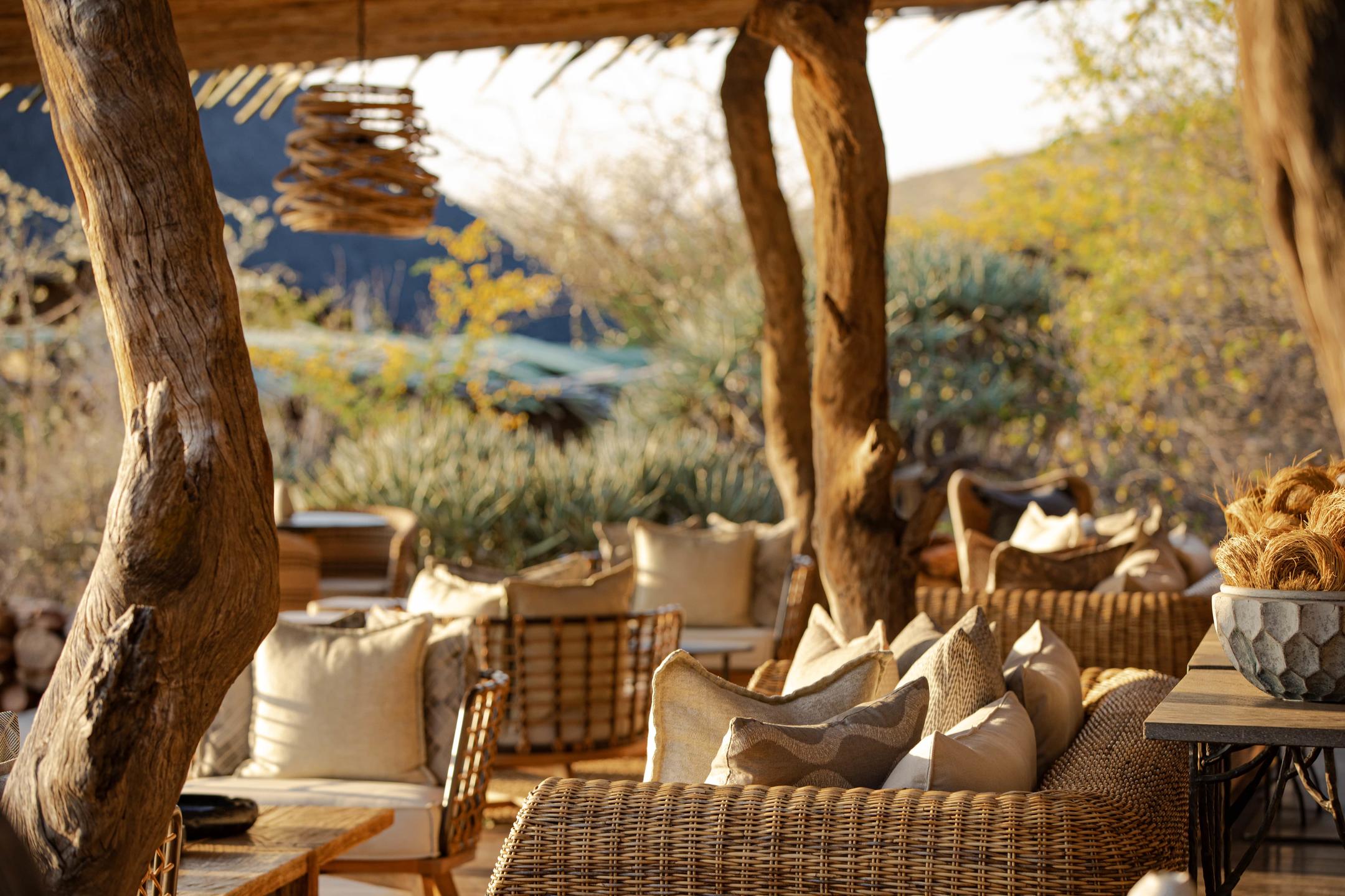 Tswalu Motse is built like a traditional village with nine 'legae' (the Setswana word for ‘home’). Set between indigenous trees and shrubs, these spacious, private garden suites are built from local stone and thatch. At the heart of Motse is the main lodge with lounge and dining areas leading onto a deep verandah overlooking an active waterhole. Amenities include a wine cellar, fire pit, boma, boutique, spa, gym, and photographic studio. In addition to dining at Motse, guests staying for two nights or more are invited to enjoy the Boscia House Pop-up, an exclusive, gourmet dining experience. Motse is ideal for couples or families (three of the nine suites have two en suite bedrooms and a shared living area).