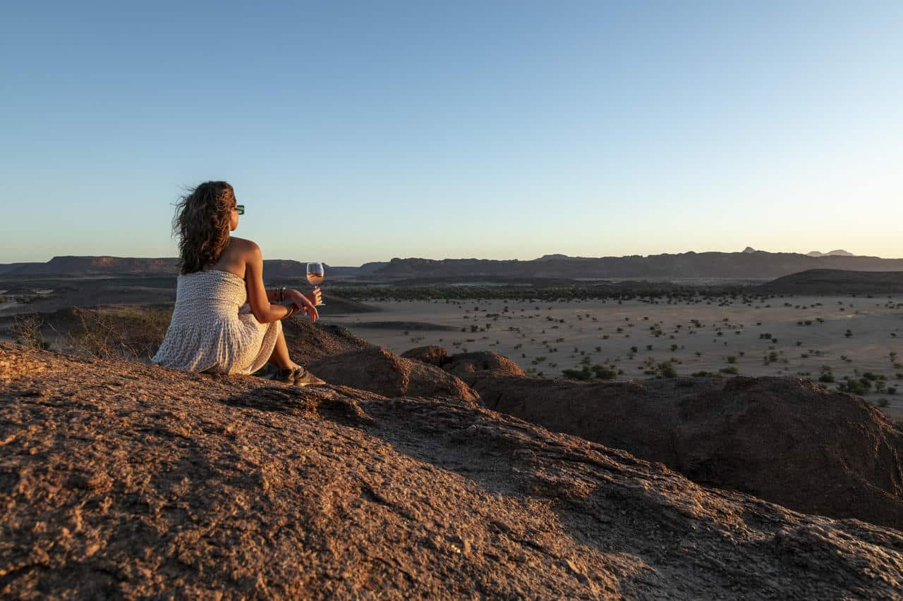 Guests can also enjoy a scenic nature drive in the ephemeral Huab River and surrounding valley. This excursion exposes visitors to unique geological formations and the possibility of sighting the elusive desert-adapted elephants.
