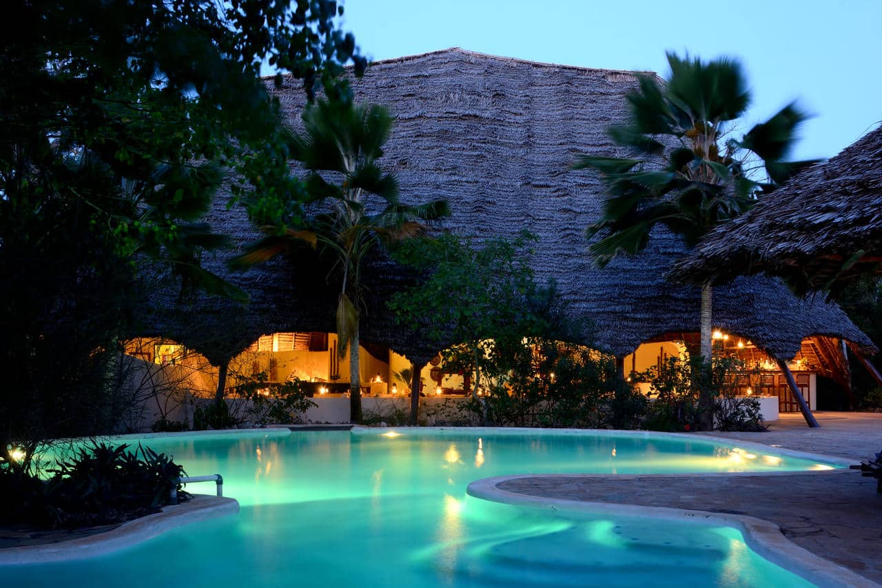 The tropical garden is characterised by old mango and baobab trees in which the rare colobus monkeys can often be found. It’s a pleasant walk down to the beach and a there’s a swimming pool in the middle of the garden, great for chilling out and relaxing or for the first stages of dive training.