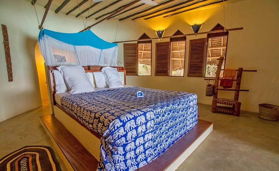There are a total of twelve spacious double storey villas at Unguja Lodge including two Family Houses. All villas are ensuite and equipped with a ceiling fan. The seven Seaview Villas and family rooms have a private stone terrace with sea views whilst the three Baobab Villas are orientated towards the garden. But there’s a sea view from the first floor and they also have the advantage of air-conditioning and private plunge pools.