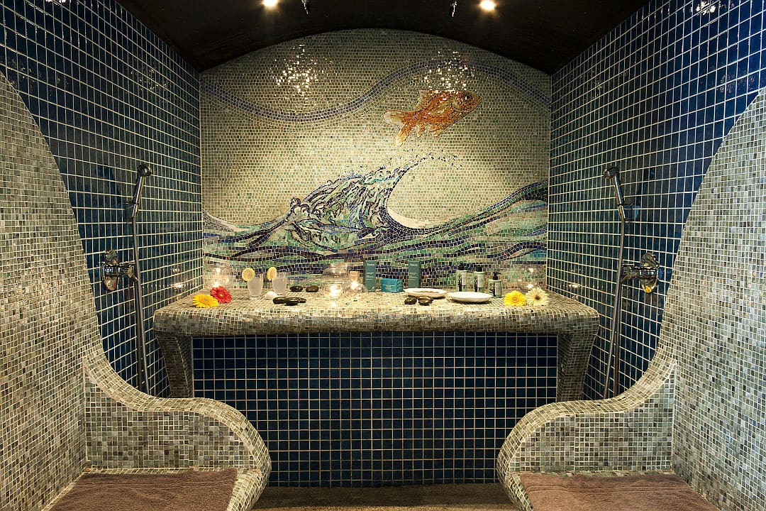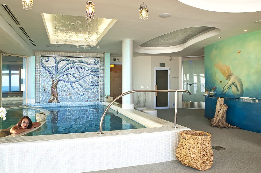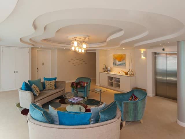 The exterior architecture is designed to encapsulate and maximise its stunning sea front location. Floor to ceiling glass ensures sea views, and the marine theme continues indoors with ceilings designed to reflect the movement of water and a rotating ‘aquarium’ of glass fish which flows through the four levels of the hotel.