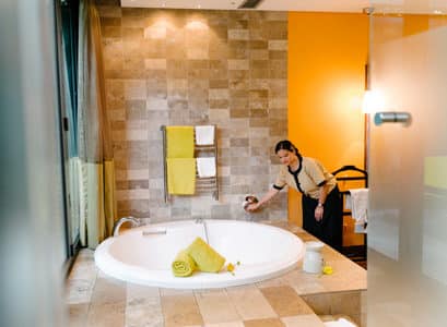 The hotelΒ is filled with works by leading South African artists and offers a choice of either Mountain facing or Courtyard facing rooms (standard or deluxe rooms with a terrace), or the contemporary and luxurious River Suites. All offering dressing gowns, tea & coffee facilities, minibar on request, satellite television, telephone, international computer connections and sockets, 24 hour room service as well as glamorous modern marble bathrooms with separate shower. Families are welcome at the Vineyard Hotel with one extra child being able to share with parents and a small number of inter-leading rooms.
