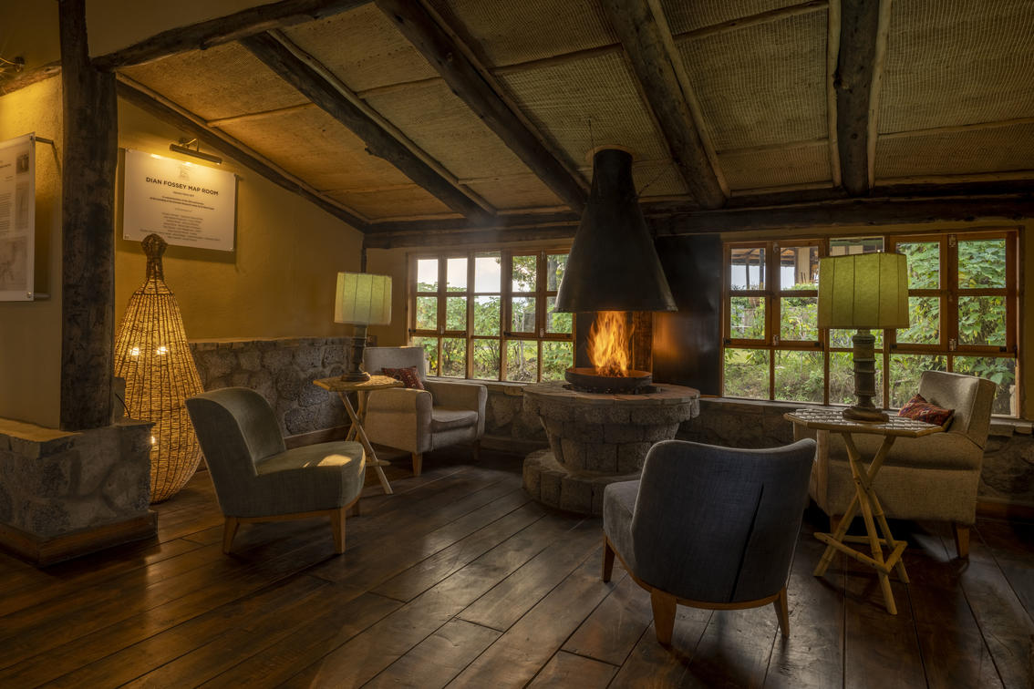 The comfortable Virunga Lodge has a lovely ambience with a reception, restaurant and spacious sitting areas. The bar/lounge area is charming with a circular open fire and plenty of books. The balcony is the perfect place to relax after a trek and enjoy the amazing views. Virunga Lodge prides itself on being particularly eco-friendly with furniture made from local materials, naturally wild gardens and solar power.