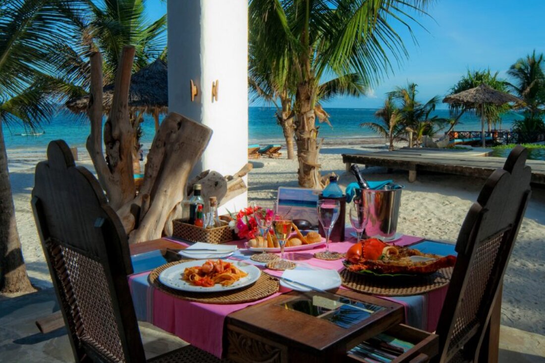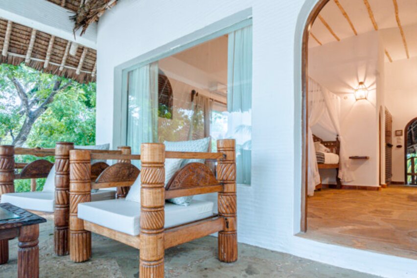 This quaint beach resort has eight very spacious suites. Each suite has a private ocean view veranda and is decorated with a perfect mix of Swahili and Mediterranean culture. There is also a self-contained villa with four rooms, ideal for a family or a small group. In addition, there is the Ocean Penthouse Apartment located on the beachfront which has four bedroom suites over two floors. The first floor has a veranda with a comfy seating area and gas barbecue; the second floor has a wooden deck and private gym. The whole penthouse has a 360 degree view of Diani Beach, the pool and gardens.