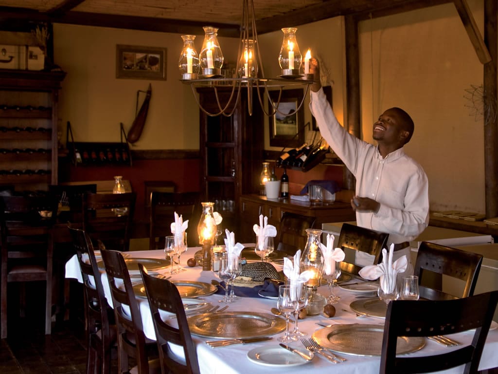 The lapa comprises a lounge, dining area and an open-plan kitchen, which allows you to chat to the chef while he is preparing delicious three course dinners. The sundowner deck with its elevated fireplace is the central meeting point of the camp providing a stylish and relaxed ambience. Whilst Wolwedans Dune Lodge aims at accommodating those guests seeking relaxed comfort and space, Wolwedans Dune Camp is a more down-to-earth and close to nature experience. It’s ideally suited for the more adventurous traveller to Namibia as the charm of the camp lies in its tranquil, intimate atmosphere, capturing the romance of a bygone era.