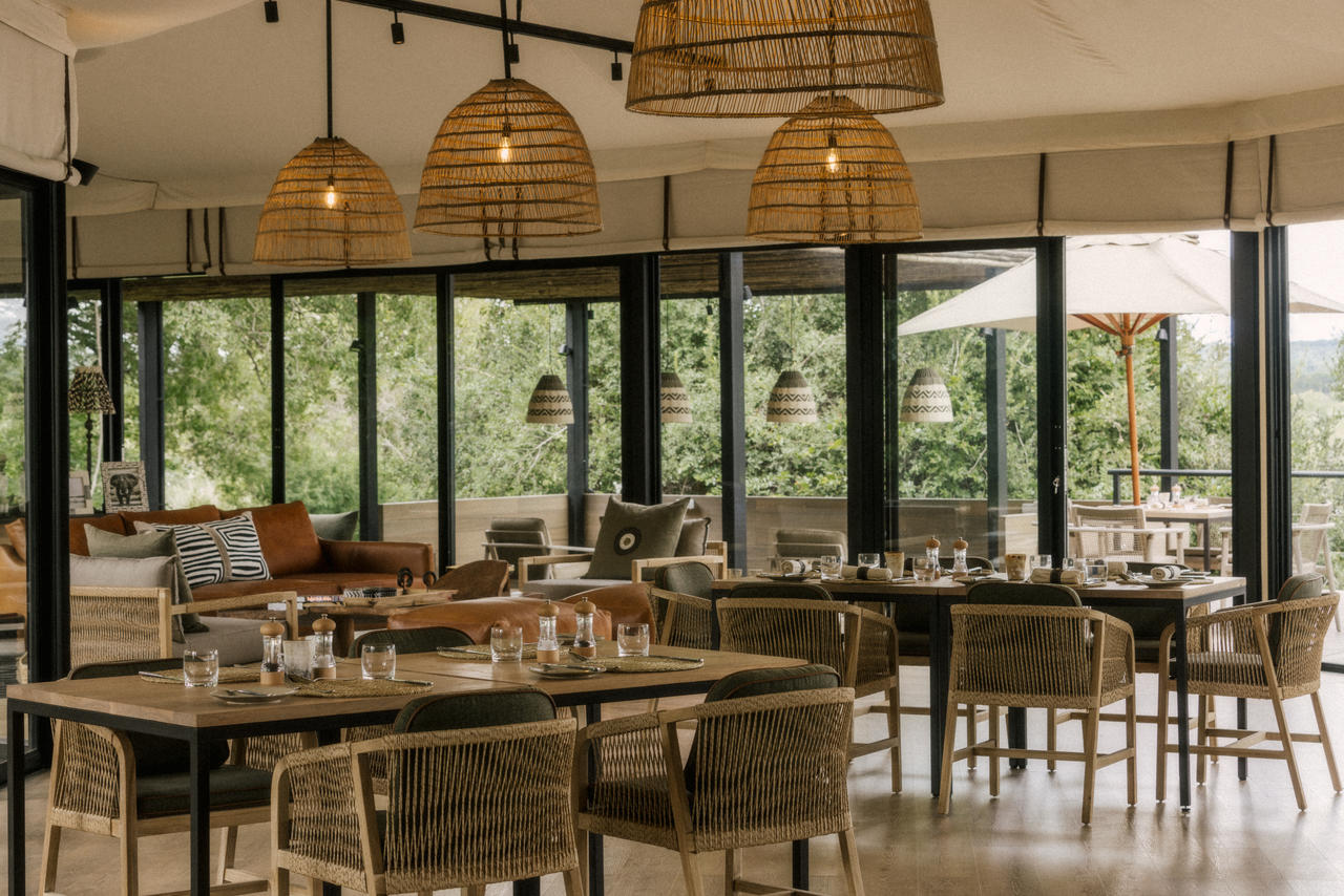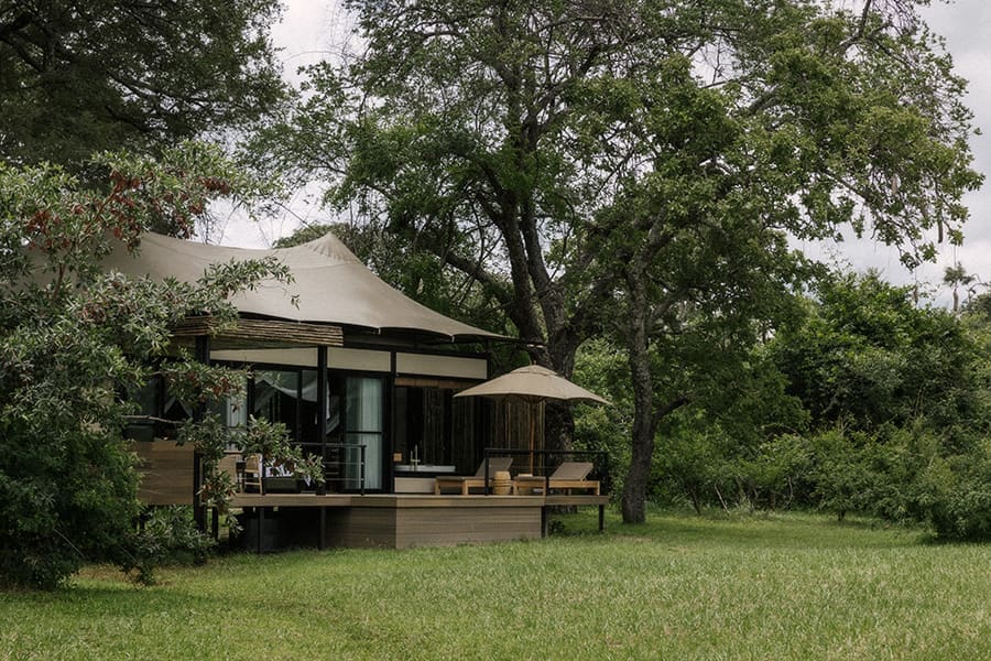 The main tented camp has a sitting/dining area and bar under canvas. This opens out onto multi-level wooden decks which make the most of its stunning setting right on the mighty Zambezi river.