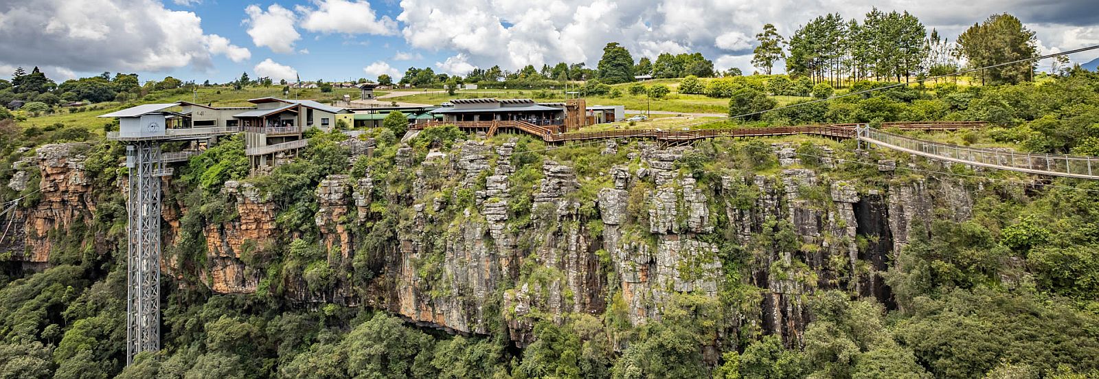 The Gorge lift experience includes the viewing lift into the gorge and the 600m interpretation trail on the valley floor, taking you on a scenic walk through the Afro-montane forest, over the river and to the foot of the waterfall. You can ask for the services of a guide (at an extra cost.)