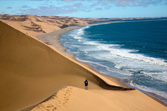 If the weather and tides allow – which they may not – you may be able to drive right to the Sandwich Harbour lagoon. However, if the tides don’t allow this, you may be able to walk some of the way. Alternatively, you will head over the dunes to see the lagoon area from one of the many beautiful lookout spots.