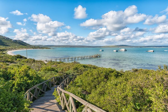 After some wine-tasting at the highest wine estate in South Africa, the award-winning Cederberg Cellars, you continue to Clanwilliam for two nights at Cederberg Ridge Wilderness Lodge. Here panoramic mountain views and fine dining await. Optional tours include a visit to a Rooibos farm, walks in the mountains or the Sevilla rock art trail. Then journey westward, visiting Bird Island at Lamberts Bay, before taking the coastal road to the charming fishing village of Paternoster. Here, enjoy long beach walks, explore the Columbine Nature Reserve, and savour traditional seafood lunches right on the sand.