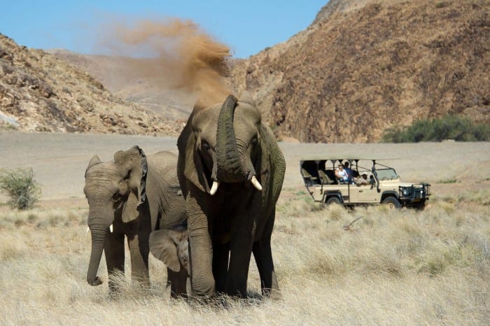 Meals and accommodation as shown in itinerary (B&B for 3 nights, Full Board & Activities or Game drives for 7 nights), Seat-in-Charter flights between destinations, transfers from airstrips, Living Desert Tour (small group) in Swakopmund