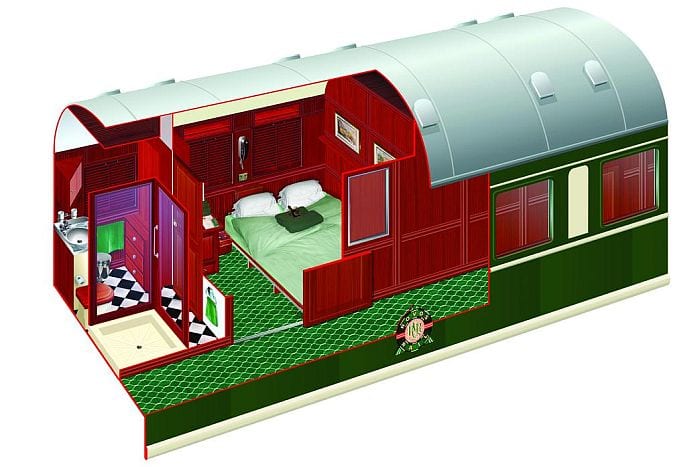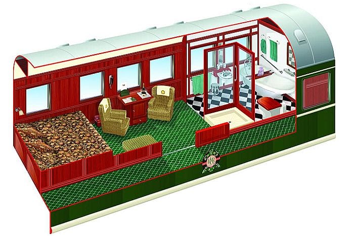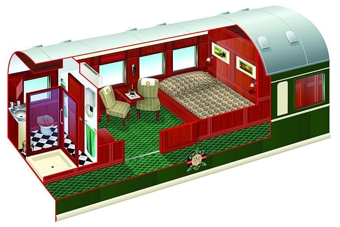 Royal Suite (±16 m²): Half a carriage in size, with private lounge, Victorian bath, and separate shower.
