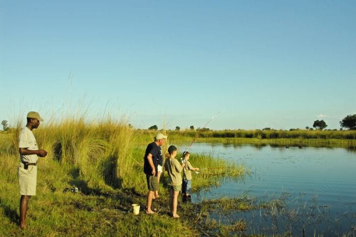 That afternoon while Dadβs snores echo around camp you may learn some of the rules and skills required in order to handle a rifle safely. This is an important tool in our world is not a toy, and should be respected at all times! Under your guideβs experienced and watchful eyes you can learn to shoot our pellet gun on our own bush range! Later, you may wish to try your angling skills Okavango style, either along the banks of lagoons and channels or, for the more adventurous from the mokoro! Here you will learn how to catch, handle and release a fish correctly ensuring you do it no harm, though you may wish to keep a couple for dinner!