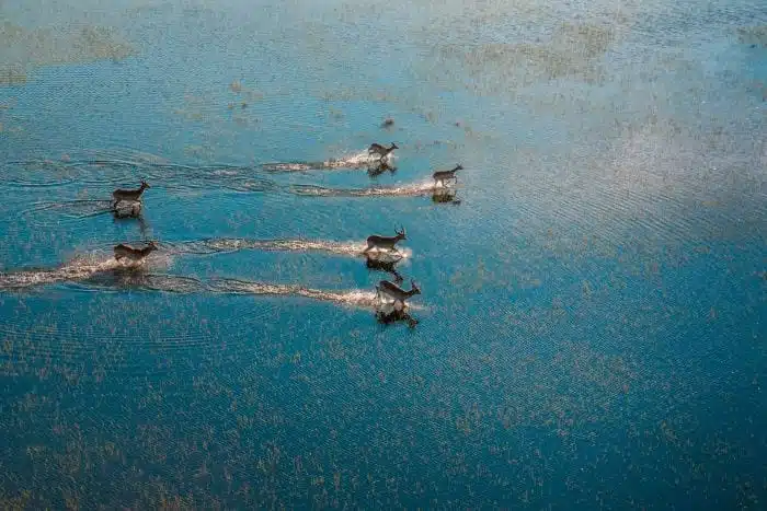 The Okavango Delta in Botswana is the largest and most beautiful oasis in Africa, one that flows inland and not to the sea.