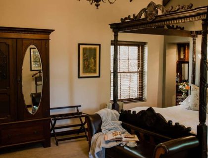 What a beauty. I expected to be impressed and I was not disappointed. (I am a sucker for old Cape homesteads with lots of history.) The manor house has been immaculately restored to (probably now above) its former glory. There are 6 luxury rooms overlooking the lovely gardens which are very well appointed with very nice classical bathrooms and quite funky circular showers to glam it up a bit. All with fireplaces. The two standard rooms are exactly the same size โ they just lack a fireplace โ and share a veranda which opens onto a stretch of lawn instead of the flower gardens. (So they are a good option for people on a bit of a budget or for family or friends travelling together). The family room was very charming, in the old stable block, with a main bedroom and bathroom downstairs and a kids room upstairs on the mezzanine level.